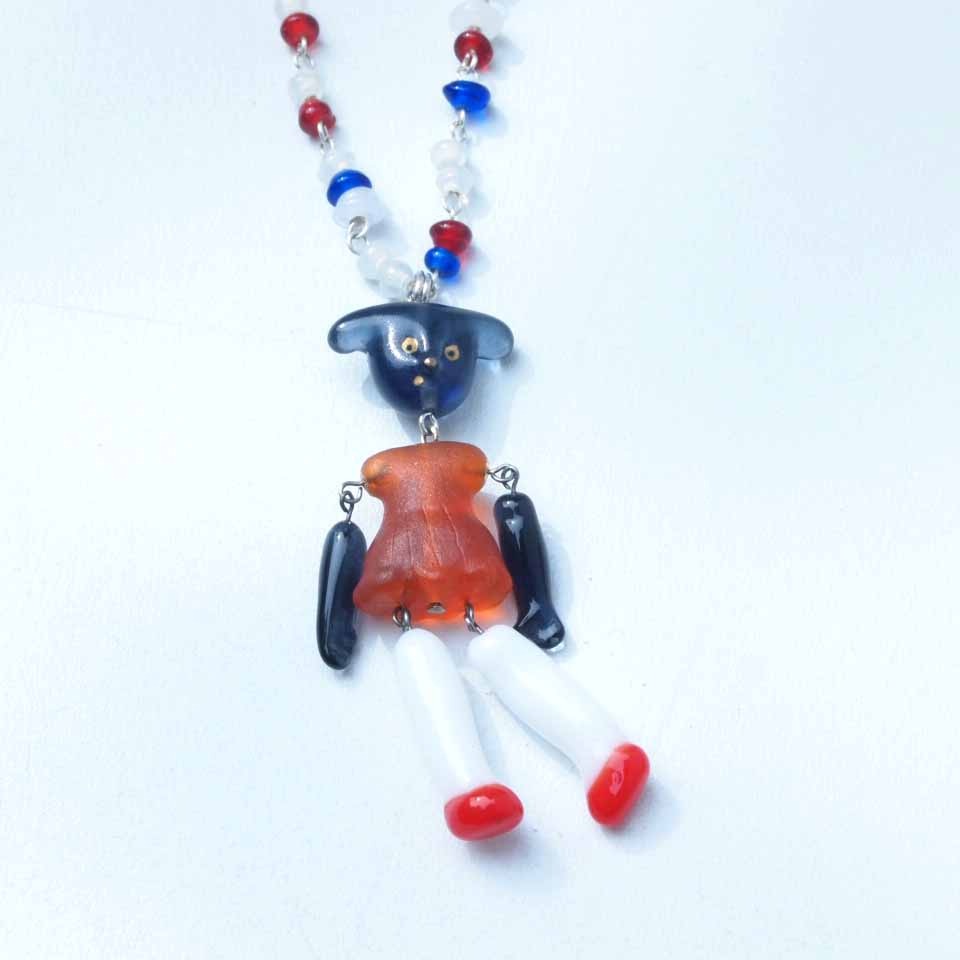 技法;バーナーワーク 素材:ガラス、SV925(チェーン)(シルバー925は純銀に近い銀です。)プッペンシュピールはドイツ語で「人形劇」という意味。