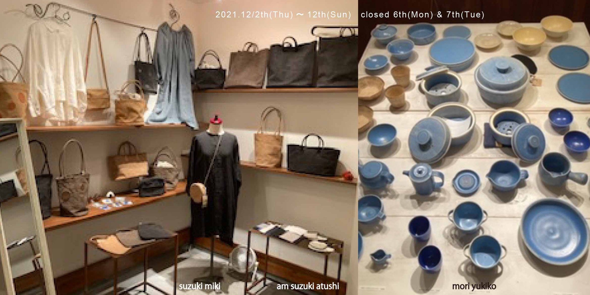 ギャラリーマミカ企画「冬から新春への暮らしと装い-am鈴木厚司(帆布バッグと革小物)・すずきみき(テキスタイル)・森悠紀子(陶)」を開催します。(実店舗は6日月曜と7日火曜は休廊)オンラインでも、出品作品の一部の主だった作品を期間限定でご紹介します。参考になさって、ぜひよろしければ、ご来店ください。遠方でご来店できない方は、より詳細に知りたい場合コンタクトやHPお問い合わせ、インスタグラムDMなどからご連絡ください。