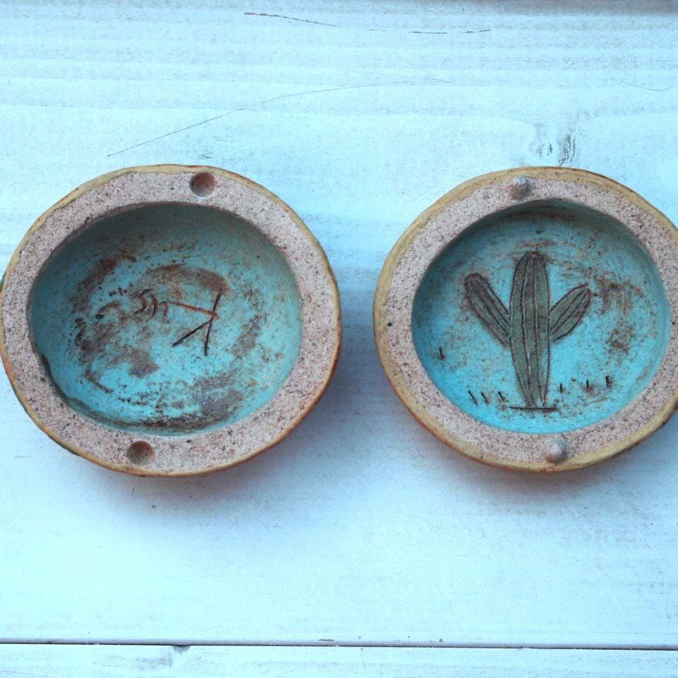 小さな中に描かれた、じっとみつめるロバの目やしぐさから、ロバの鳴き声やはなし声、ファンタジーな音がきこえてきそうです。この小箱の蓋を手でそっともちあげると、、、、中からは、、、きれいな水色の中にサボテンがあらわれ、ふっと微笑みがこぼれます。