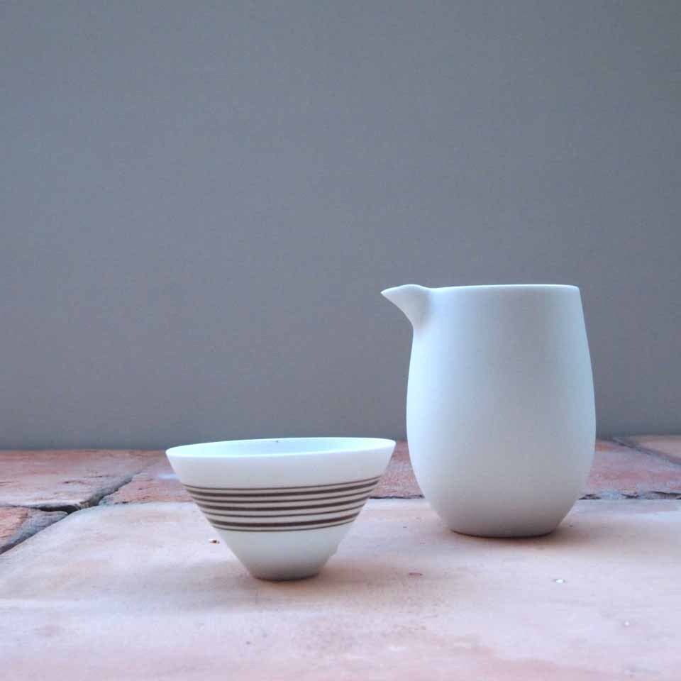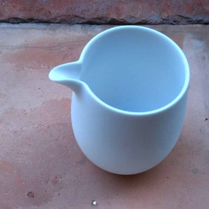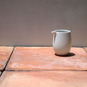 丸く下部が少し膨らんでいる片口です。手に収まり片手で持ちやすく、水切れはとても良いです。酒器としてはもちろん、花をいけてもすてきなうつわです。森岡希世子さんならでな、白磁の曲線と口のフォルムが繊細でとても美しい作品です。