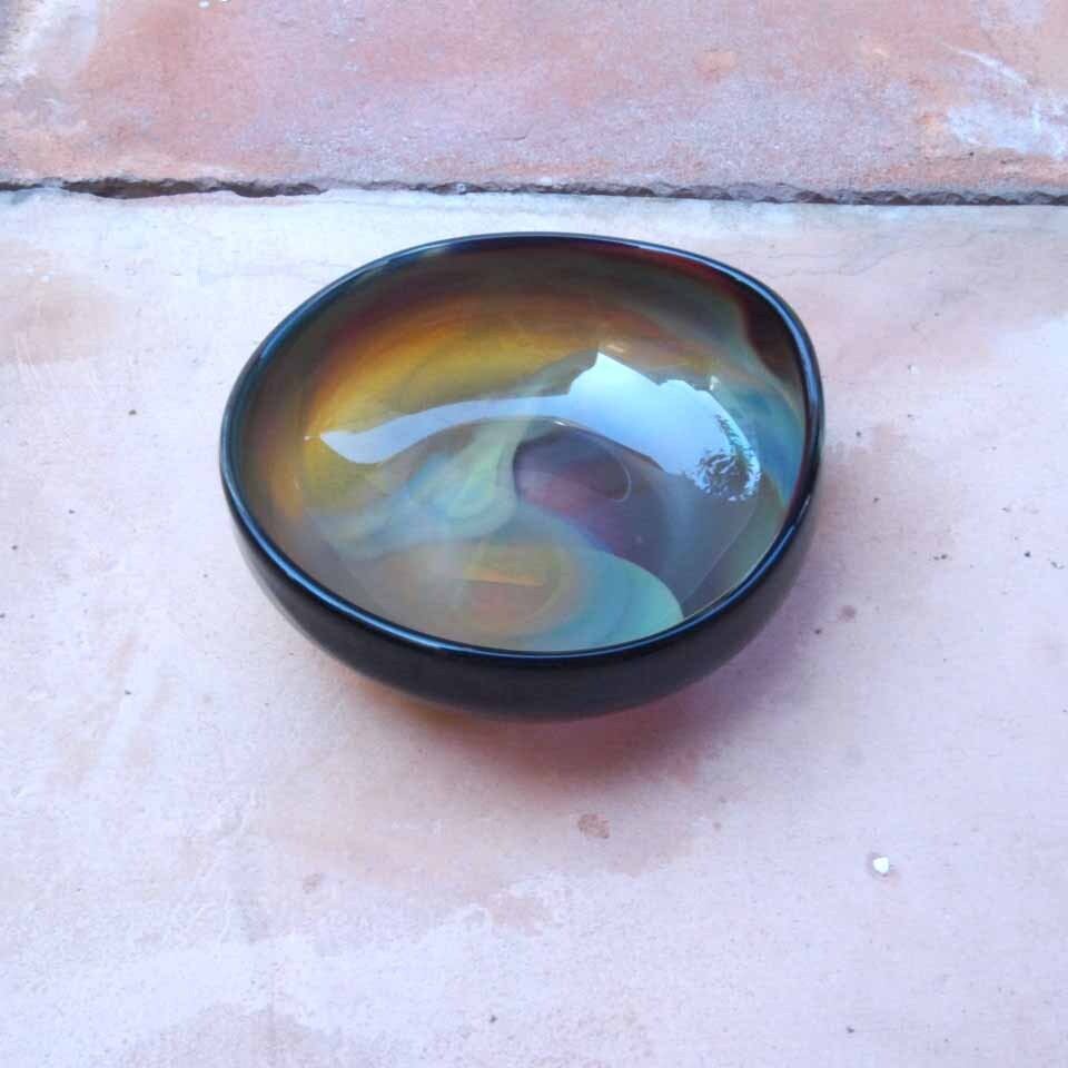 独特な複数の色が重なり混ざりあってマーブルのような模様が現れている、とても美しくファンタジック、アールヌーボーのような雰囲気のある作品です。